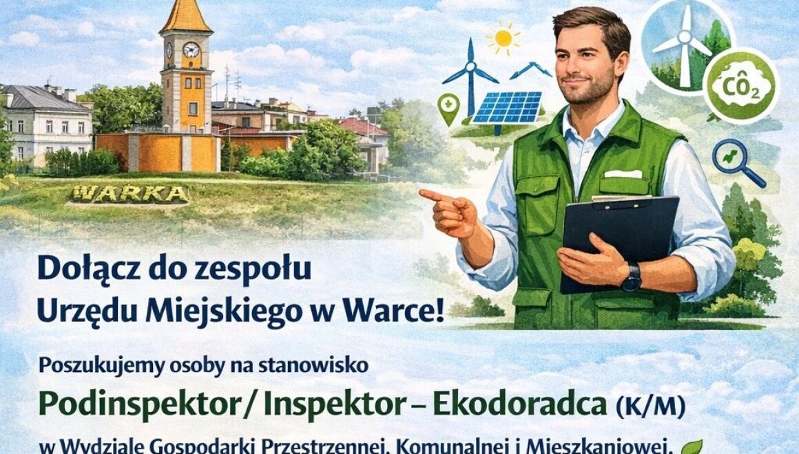 Poszukujemy osoby na stanowisko Podinspektor / Inspektor – Ekodoradca (K/M) w Wydziale Gospodarki Przestrzennej, Komunalnej i Mieszkaniowej.