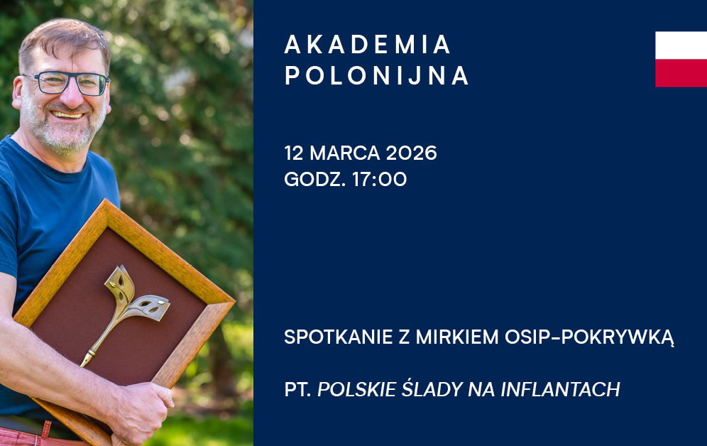 W czwartek 12 marca o godz. 17.00 w Centrum Edukacyjno-Muzealnym odbędzie się kolejne spotkanie z cyklu „Akademia Polonijna”. Tym razem gościem wydarzenia będzie Mirek Osip-Pokrywka – fotograf, podróżnik i dziennikarz, który opowie o polskich śladach na Inflantach.